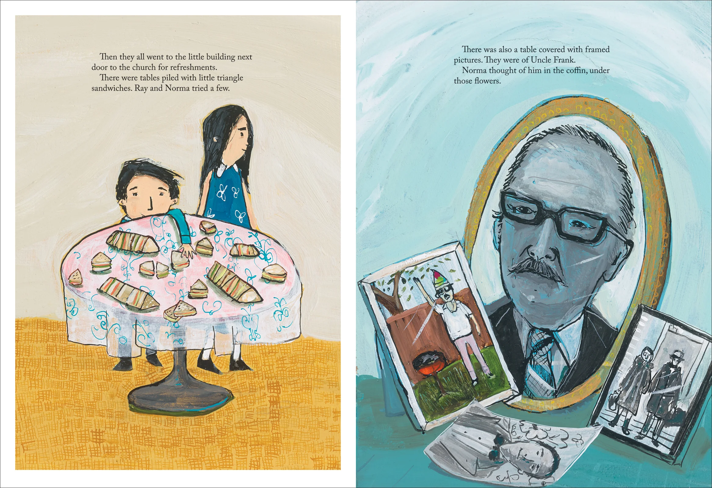 Norma and her parents are going to her great-uncle Frank’s funeral, and Norma is more excited than sad. She is looking forward to playing with her favorite cousin, Ray, but when she arrives at the church, she is confronted with rituals and ideas that have never occurred to her before. While not all questions can be answered, when the day is over Norma is certain of one thing — Uncle Frank would have enjoyed his funeral.