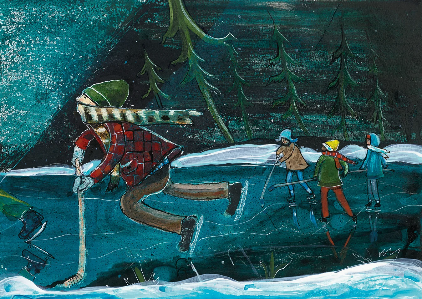 In this atmospheric story, a group of kids play hockey on a frozen lake by moonlight. At once nostalgic and timely, this is a gorgeous book that will speak to readers young and old.